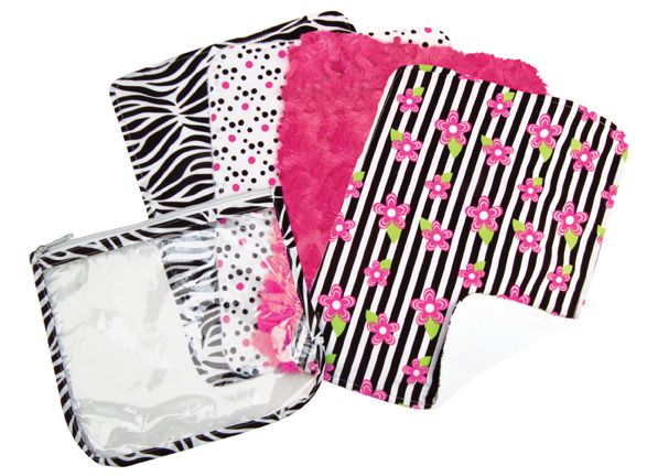 Trend Lab Zahara Zipper Pouch and 4 Burp Cloth Set Kid's reviews Shop for Cases from Hayneedle.com! Keep messes to a minimum with this stylish Trend Lab Zahara Zipper Pouch And 4 Burp Cloths Gift Set. This set features four burp cloths packaged inside a matching, clear and reusable dirty duds pouch. Each burp cloth has fun, modern-style prints and solids on the front and soft terry on the back. The burp cloth patterns include: one black and white zebra print; one paradise pink and black confetti dot print on a white background; one black and white stripe print with paradise pink and electric lime floral accents; and one with solid paradise pink rosette velour. Each piece in this set coordinates with the Zahara collection by Trend Lab. About Trend LabBegun in 2001 in Minnesota, Trend Lab is a privately held company proudly owned by women. Rapid growth in the past five years has put Trend Lab products on the shelves of major retailers, and the company continues to develop thoroughly tested, high-quality baby and children's bedding, decor, and other items. With mature professionals at the helm of this business, Trend Lab continues to inspire and provide its customers with stylish products for little ones. From bedding to cribs and everything in between, Trend Lab is the right choice for your children.