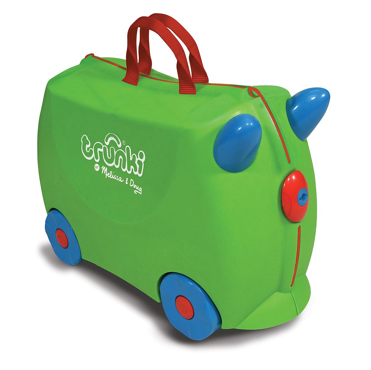 Melissa & Doug Trunki Melissa & Doug Trunki helps kids comfortably ride their luggage as they travel. This suitcase is lightweight and durable that enables kids to transport it from one place to another with great ease. When at home, kids can use it as a convenient storage bin to store all their essentials. The carry handles allow for easy portability. Why YouG ll Love It: This trunki can make vacations all the more fun for kids and for your entire family. Age: 3 years and up Features Tow strap Built-in wheels and stabilizers Carry handles Lightweight and durable Can hold up to 250 lbs.