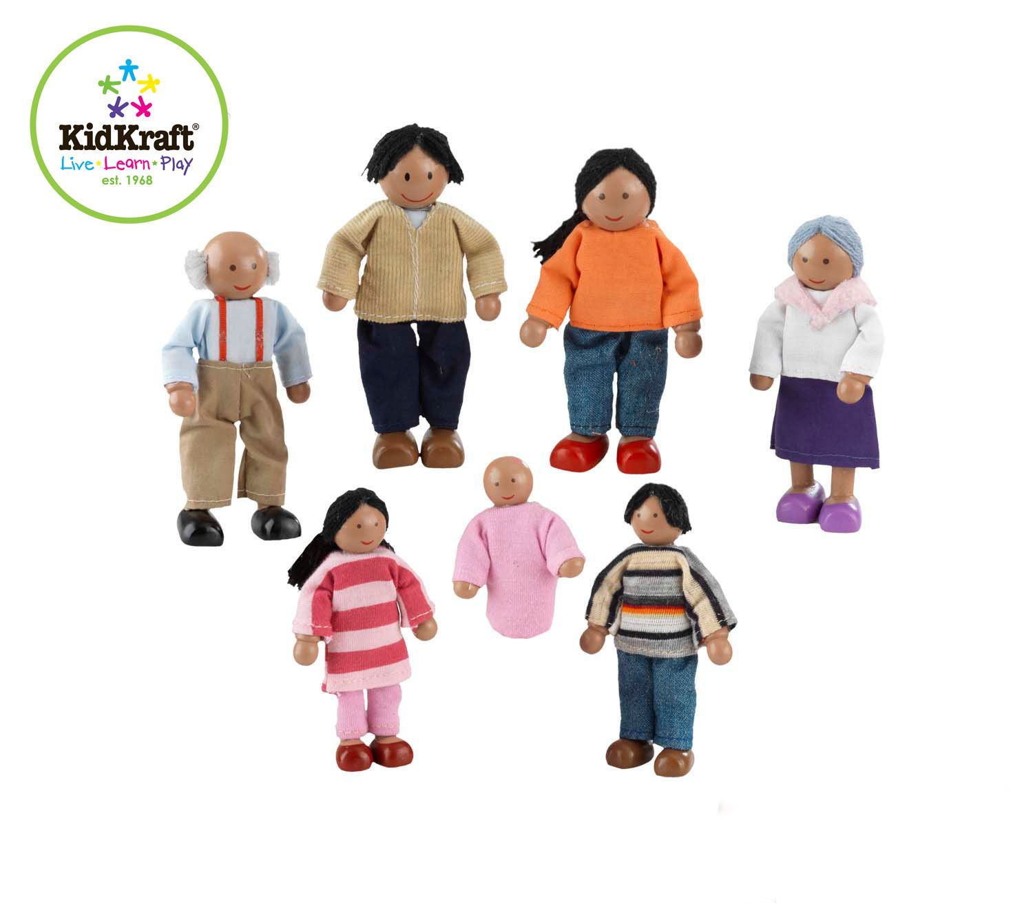 Overview Kidkraft African American Doll Family Of 7, Shop for Dolls from DollHousesGalore.com! The Kidkraft African American Doll Family is perfect for any young girl who enjoys playing with dollhouses. This family was created especially for the Cherry Hill Dollhouse and the Pastel Swivel Dollhouse but would work with any dollhouse meant for five inch dolls. The family includes a mom dad son daughter baby grandpa and grandma. This family is perfect for hours of make believe dollhouse fun. About KidKraftKidKraft is a leading creator manufacturer and distributor of children's furniture toy gift and room accessory items. KidKraft's headquarters in Dallas Texas serve as the nerve center for the company's design operations and distribution networks. With the company mission emphasizing quality design dependability and competitive pricing KidKraft has consistently experienced double-digit growth. It's a name parents can trust for high-quality safe innovative children's toys and furniture.