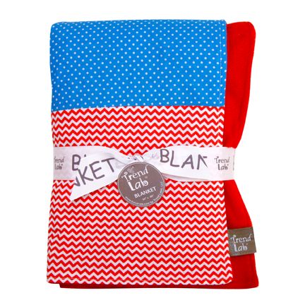 Keep your little one warm and secure with this Mommy's Little Monster Multi-Patched Blanket by Trend Lab. Patches of fun, printed cotton are displayed on the front with cuddly cherry red fleece on the back. Blanket patches include: a cherry based bandana print featuring dashes of blue raspberry, summer green, orange peel and turquoise; an ocean blue and white dot print; a royal blue, yellow, summer green and white star print on a blue raspberry base; a cherry, paradise pink and orange peel circle print; an ocean blue and summer green check print; a cherry red and white chevron print; and an ocean blue and white mini dot print. Blanket measures 32" x 40". Blanket coordinates with the Mommy's Little Monster Collection by Trend Lab.