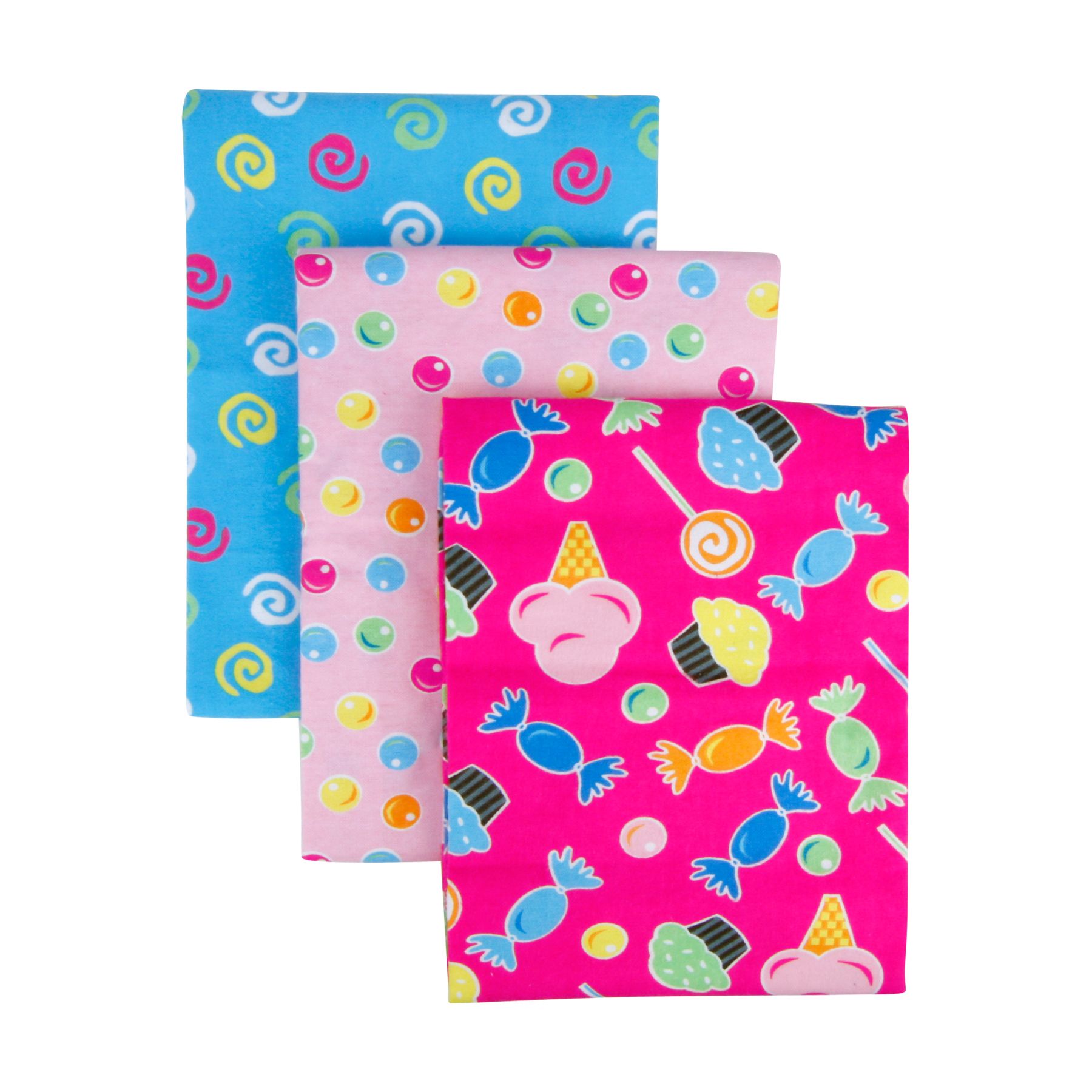 Blankets. Web exclusive! The perfect baby shower gift for the Mom-to-be! Keep your little one warm and secure with the Candy Flannel Receiving Blanket Set by Trend Lab. This 3-pack of receiving blankets can be kept on the change table or in your diaper bag for swaddling, burping, or when you need a clean place to change your little princess. Featuring fun and colorful prints with a candy theme, these receiving blankets are versatile and handy items to have, and will co-ordinate well with other items in the Candy collection by Trend Lab. Multicolored Each blanket measures 30 x 30 Machine wash cold; Gentle cycle Do not bleach; do not dry clean Tumble dry low or line dry 100% cotton Imported